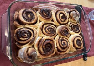 - In the morning, preheat oven to 375F. Pour cream over rolls before baking in oven for 24-30 minutes.