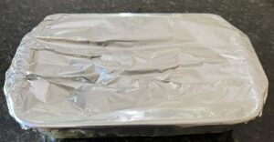 - Cover with tin foil and place in oven preheated to 390F for 1 hour.