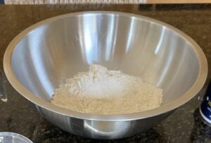 - In a large bowl, mix flour and salt. Set aside.