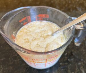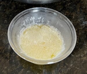 - Add yeast mixture to milk and butter and let sit for 5-10 mins.