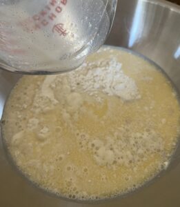 5. Add yeast mixture to milk and butter and let sit for 5-10 mins.